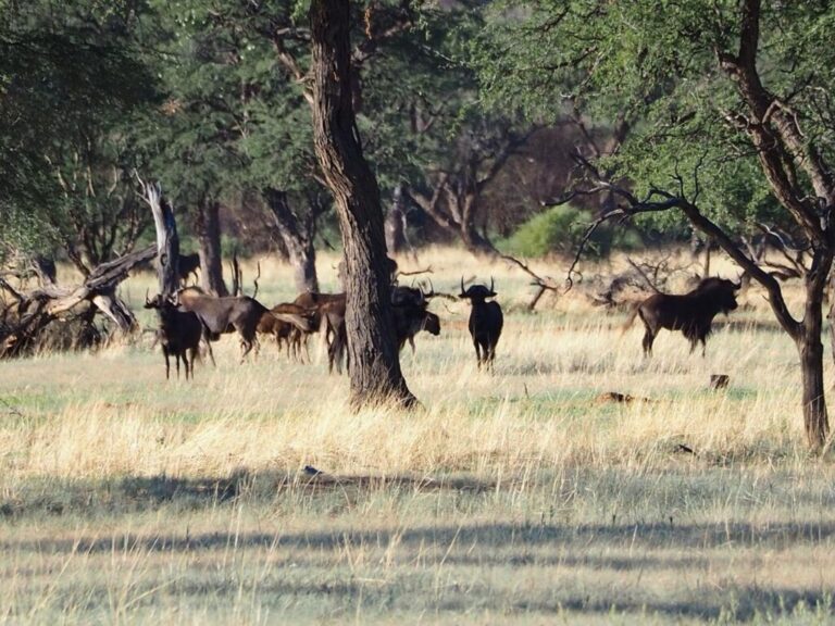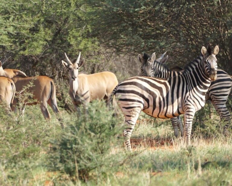 We will spend the first four days in Namibia will on a large, family-run farm, where forty horses are the least exotic part of the local animal world. The property spans an impressive 11,000 hectares and is home to an abundance of wildlife. Alongside horses and domestic animals, the farm raises Simmental cattle—a breed also very common in Europe. Most importantly, the estate serves as a haven for many wild animals that we’ll observe from the saddle. On the vast terrain we’ll encounter giraffes, antelopes, zebras, oryxes (Namibia’s national symbol), somewhat mischievous ostriches, and warthogs—whose burrows require careful navigation while riding in certain areas. The region is also home to various lizards, small mammals, wild cats, jackals, and baboons—and with a bit of luck, we might even spot leopards.